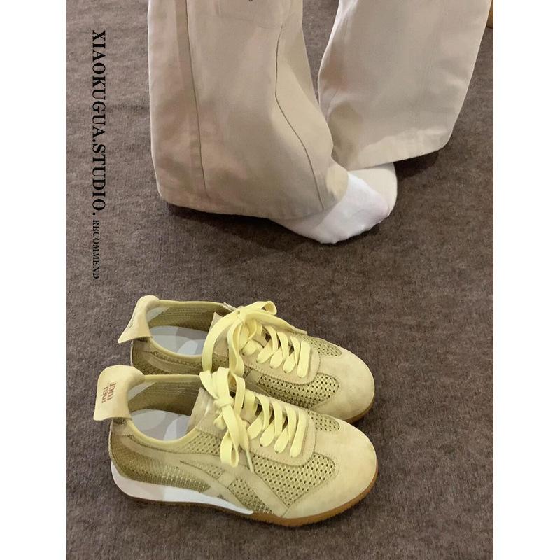 Сетчатые дышащие тренировочные кроссовки Forrest Gump женские 2025 новая летняя плоская белая обувь ретро повседневная спортивная обувь 40 жёлтый
