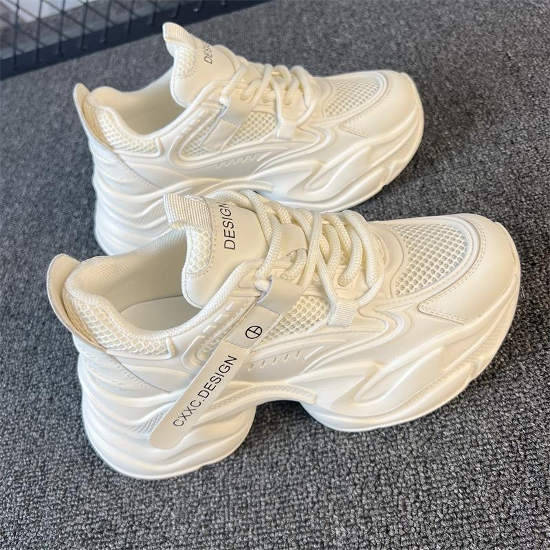 Сетчатые дышащие увеличивающие рост универсальные кроссовки для папы Весна 2025 новые маленькая толстая подошва взрывная уличная женская обувь 40 покинуть белый