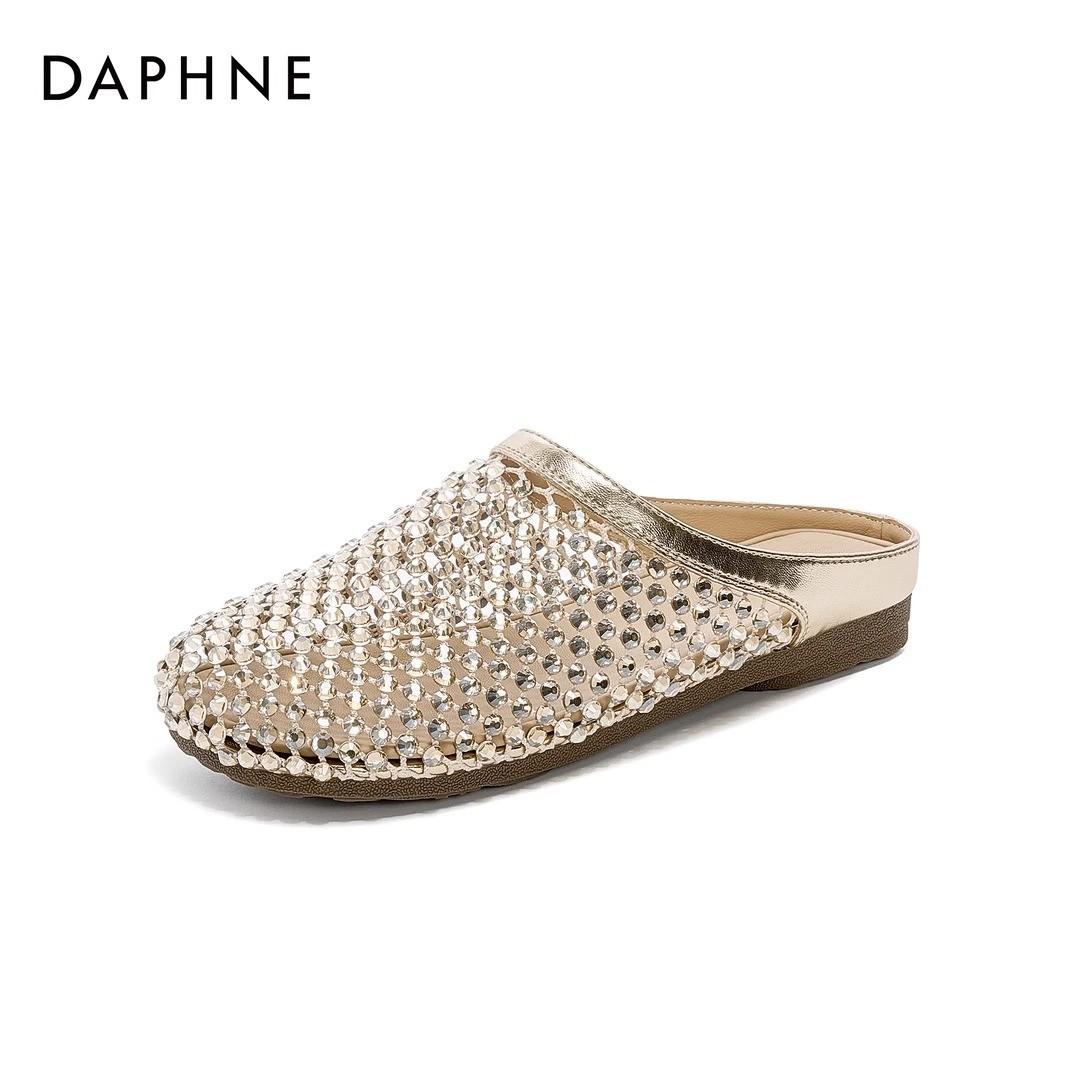 Сетчатые шлепанцы с полуноском из страз, женская уличная обувь, лето 2025, новая модная универсальная ленивая обувь на одну ногу, крутые шлепанцы 40 золотой