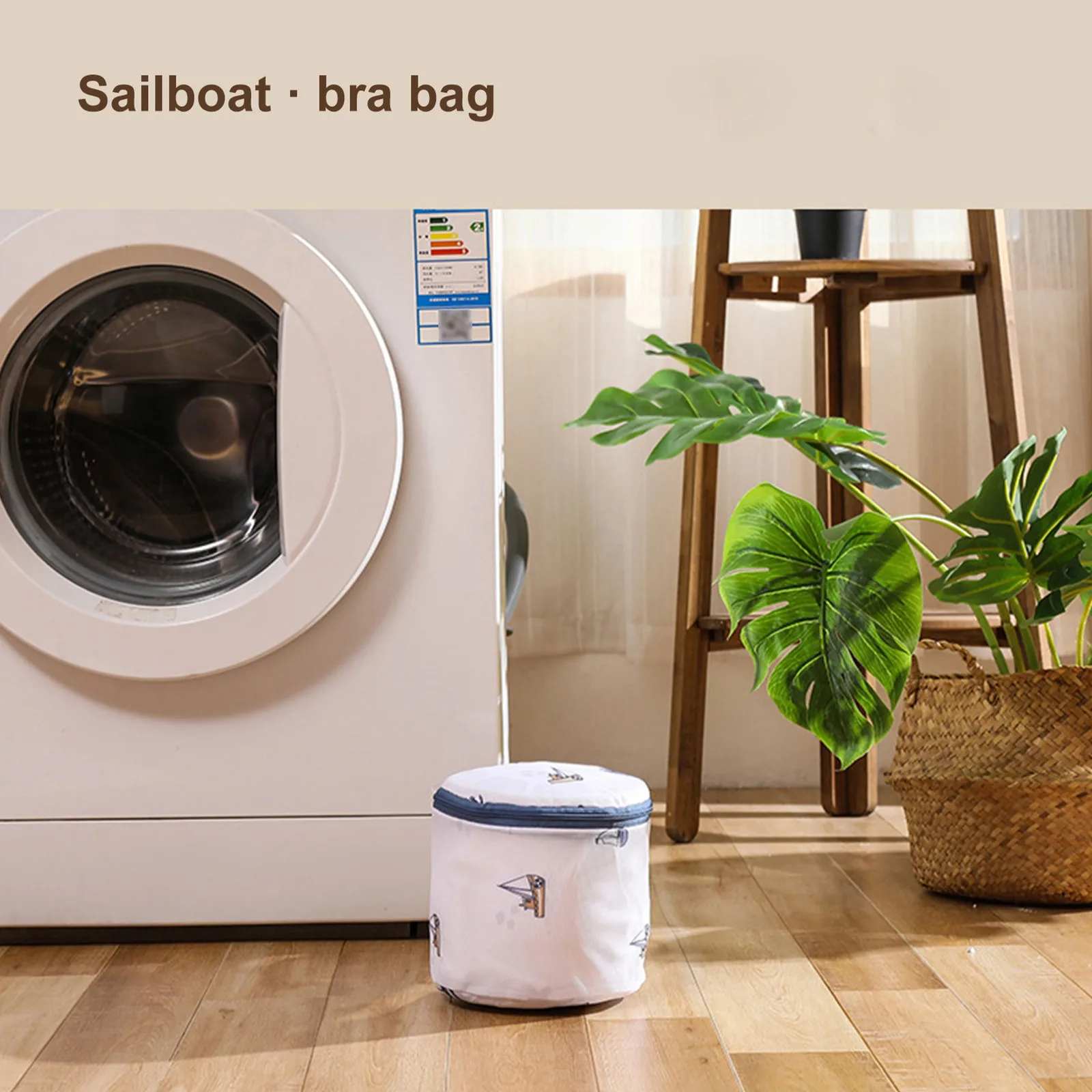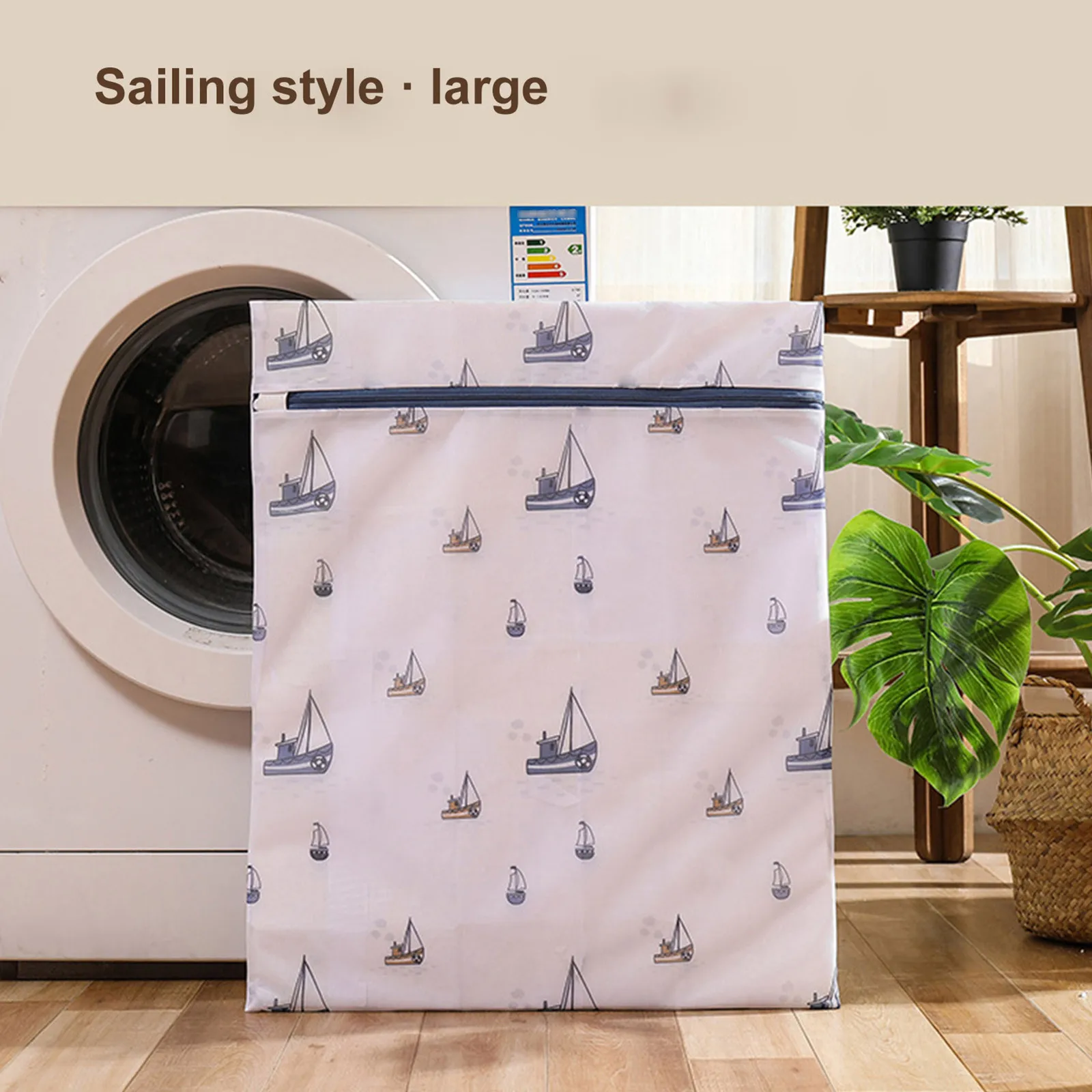 Сетчатый мешок для стирки на молнии с принтом парусника, Полиэстеровая Сетчатая Сумка для стирки нижнего белья, носков, стиральной машины, с...