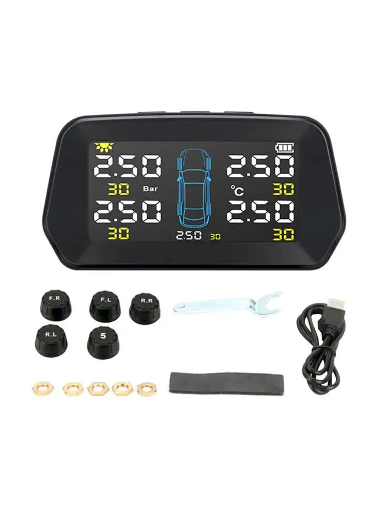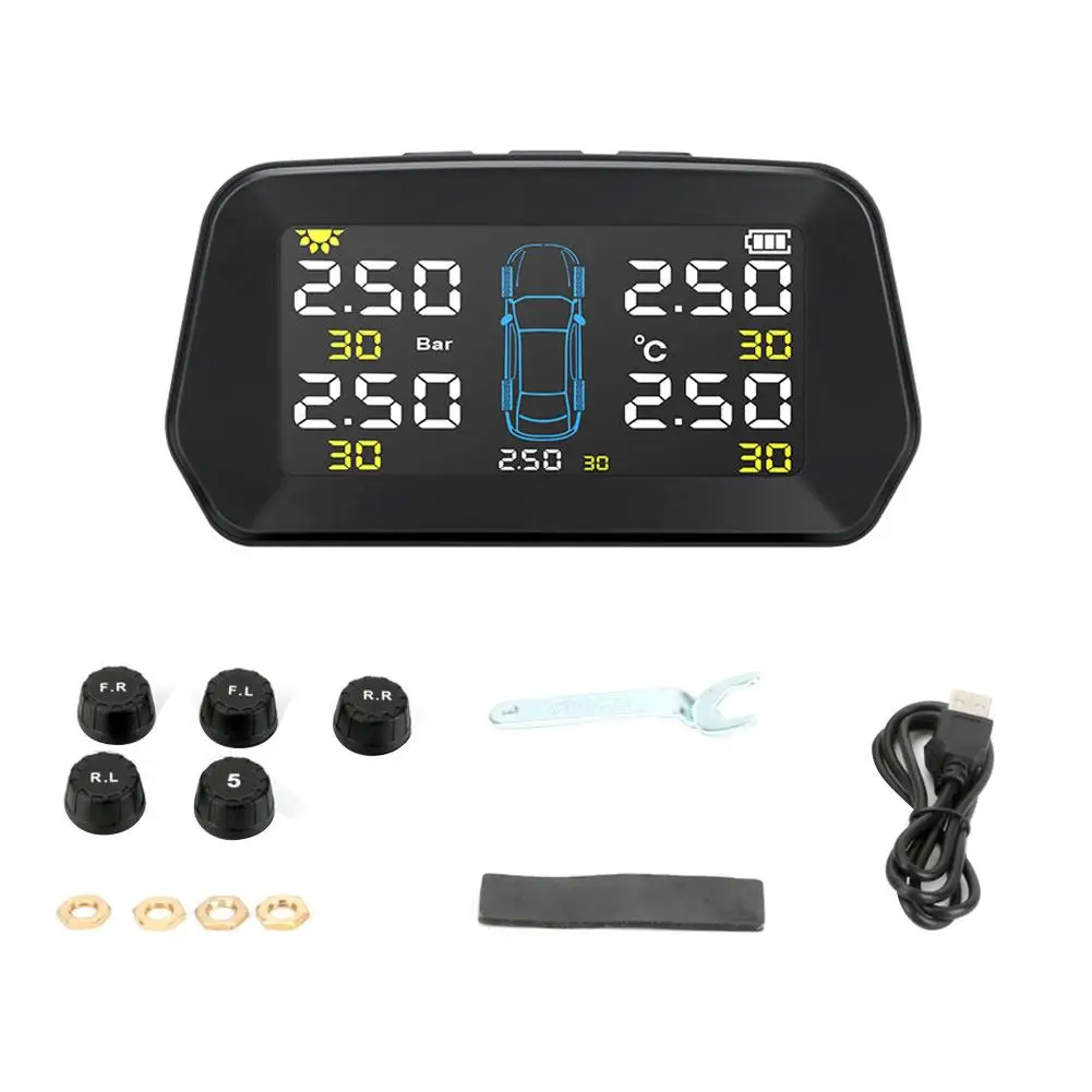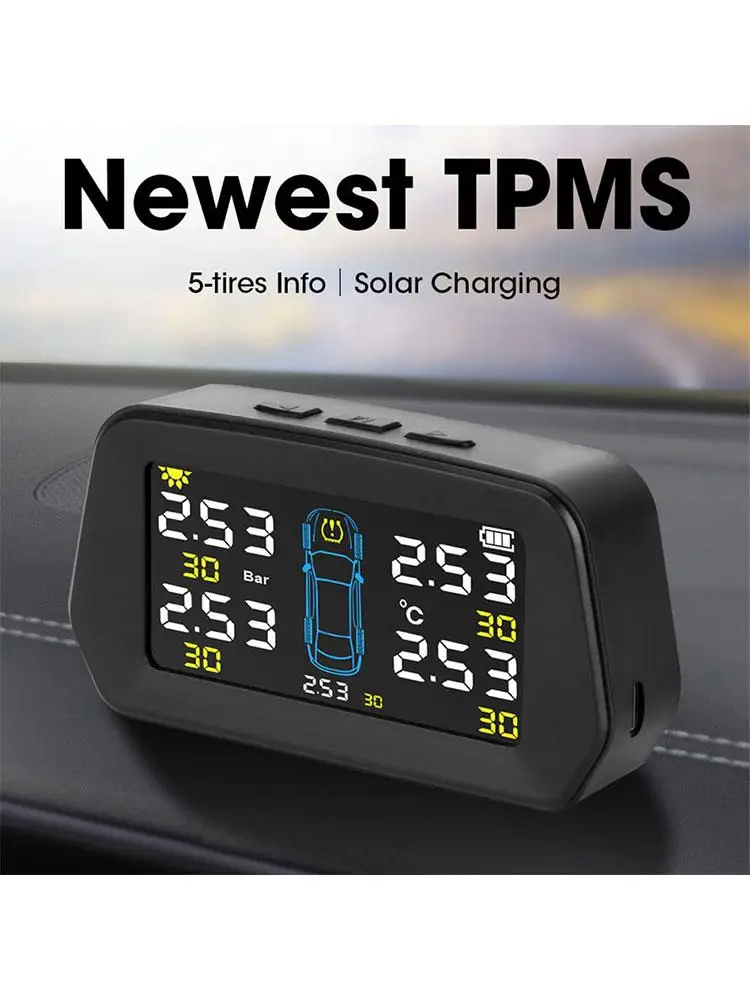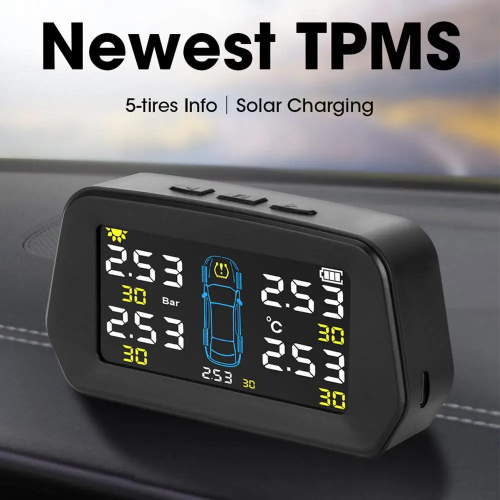Сигнализация Датчик давления в шинах Надежная прочная система мониторинга Солнечная энергия Автоматическая безопасность Контроль давления в шинах TPMS для 5 шин