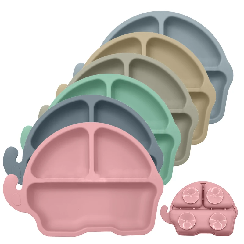 Силиконовая детская Тарелка на присоске, мультяшная детская посуда с присоской, тарелки со слоном для детей, тренировочная посуда для кормления малышей