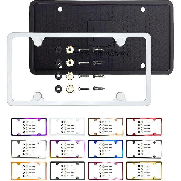 Силиконовая защита задней панели Четыре отверстия Тонкая рамка для номерного знака Фиолетовая Зеркальная Хромированная Гальванопокрытие Универсальная посадка Алюминиевая накладка-заглушка на винтах, Нержавеющая сталь T304 белый