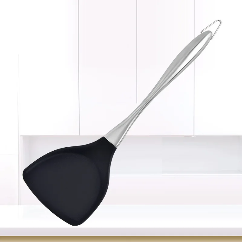 Силиконовая кухонная утварь с ручкой из нержавеющей стали, антипригарная специальная лопатка для кастрюль, высокотемпературная кухонная у...
