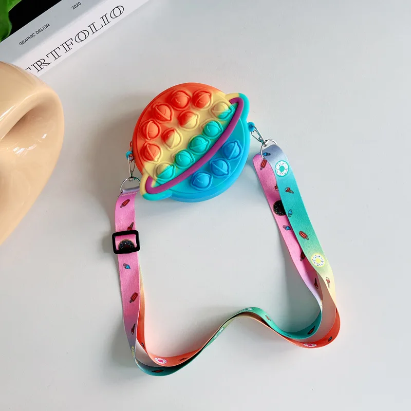 Силиконовая сумка для младенцев, милая Радужная сумочка на ремне через плечо, декомпрессионный кошелек для мелочи с планетами, модная сумка...