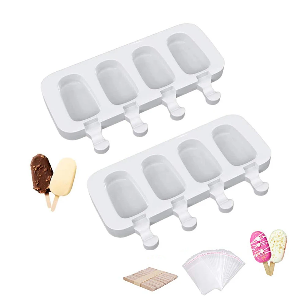 Силиконовая форма для кошек с 4 отверстиями и Деревянными Палочками, формы для мороженого, формы для домашнего льда для малышей 0898