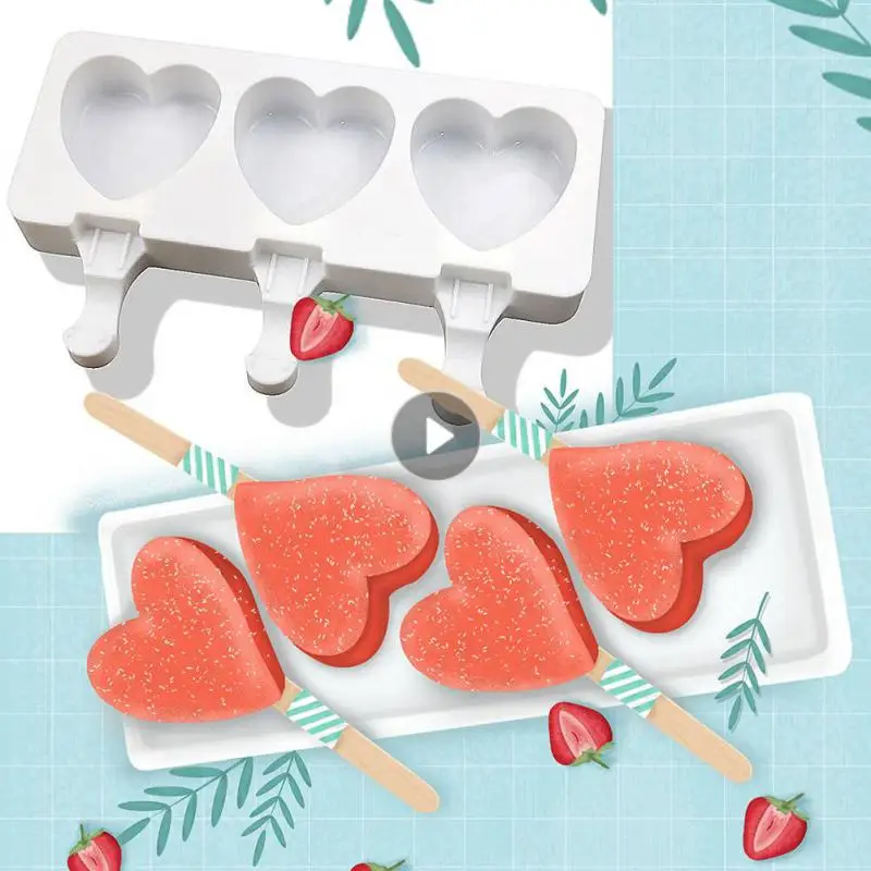Силиконовая форма для мороженого в форме сердца с 3/4 отверстиями, устройство для приготовления льда в полоску, лоток, многоразовая форма для...