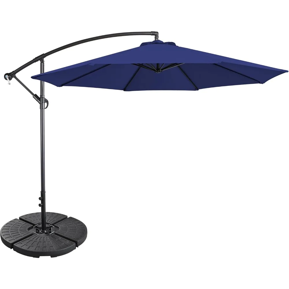 Смещенный зонт для патио длиной 10 футов с круглой основой из 4 частей в комплекте, подвесной консольный рыночный зонт с легкостью наклоном и рукояткой, 8