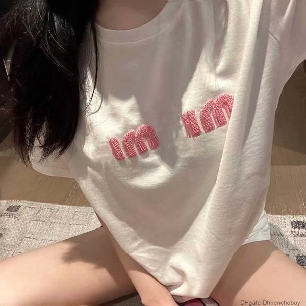 correct edition miu new special embroidery sequins sweet short sleeve t-shirt, White