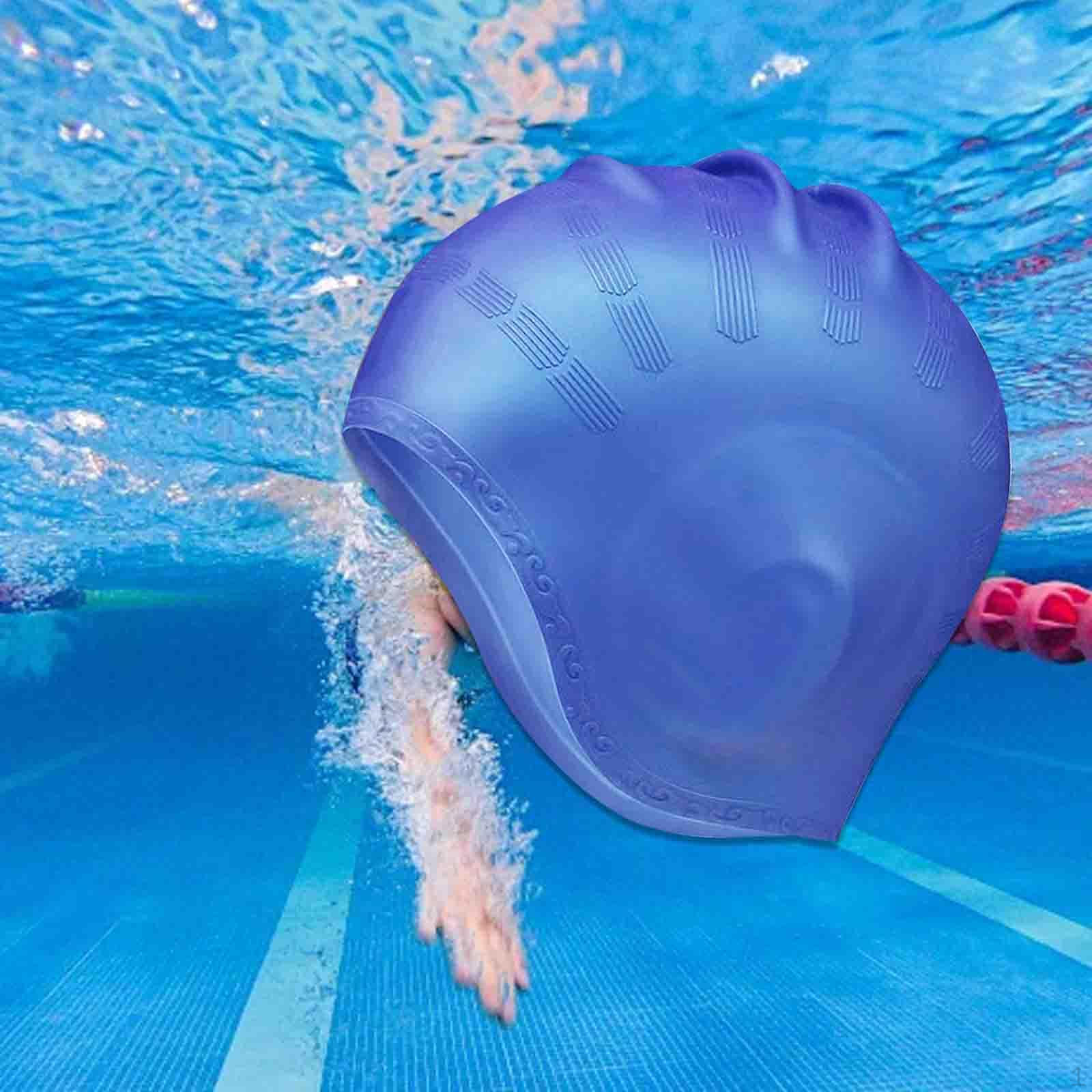Силиконовая шапочка для плавания, шапочка для плавания, удобные головные уборы для защиты ушей, шапочки для купания для взрослых синий