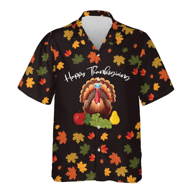 Thanksgiving 3D Printed Shirts Short Sleeve Hawaiian Shirt Christmas Blouses Graphic Shirt Animal Turkey Camisa Mens Clothes Top