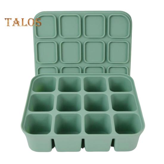 Силиконовый лоток для льда с крышкой, гибкая форма для льда без BPA на 12 кубиков, экономящая место, легко снимаемая, штабелируемая квадратная форма для льда зелёный