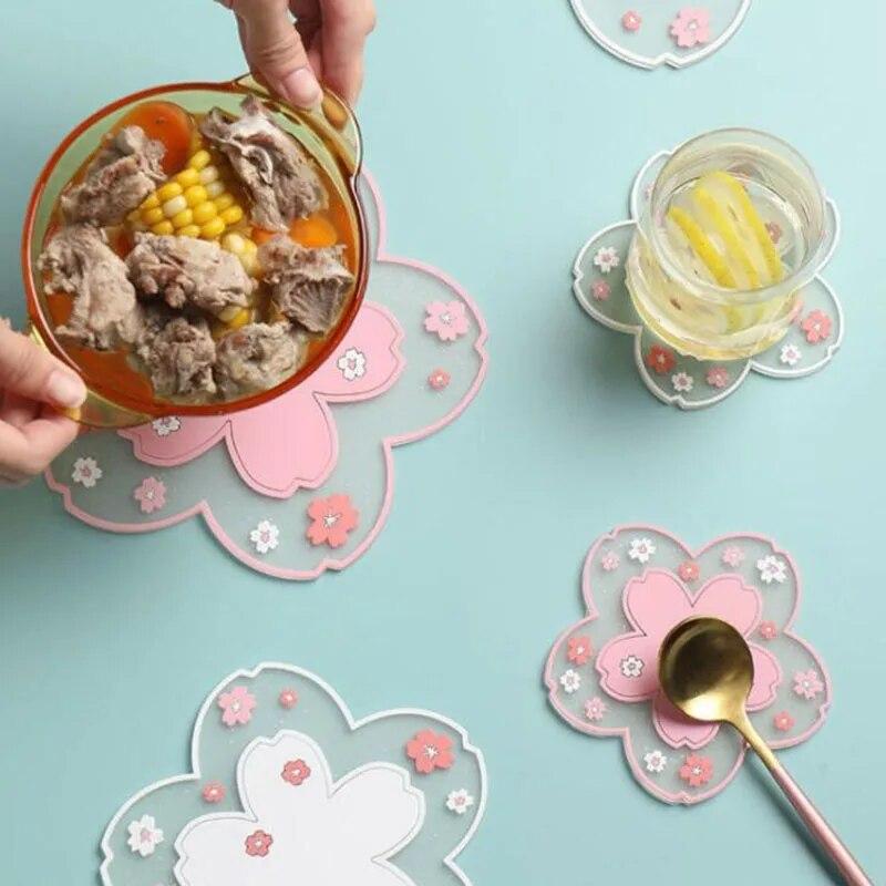 Силиконовый нагревательный настольный коврик с вишневым цветом, чашка для чая, кофе, напитков, милая подставка, нескользящая подставка для кухни, коврик для сушки посуды, подставка для столовых приборов