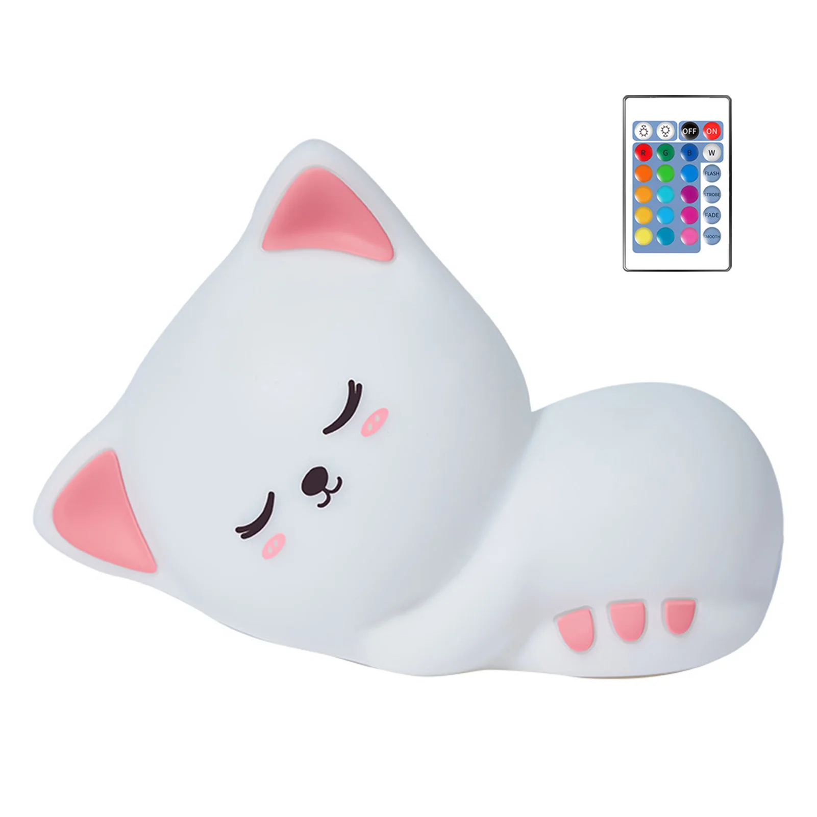 Силиконовый ночник в виде кошки, милая Светодиодная лампа с изменением цвета, ночсветильник для детей, милая USB лампа с теплым белым светом д...