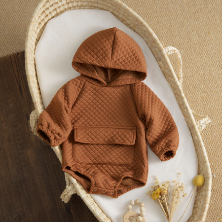 jaweiwi Baby Fall Winter Hooded Romper Casual Long Sleeve Solid Color Front Pocket Bodysuit Size 0 6 12 18 24 M