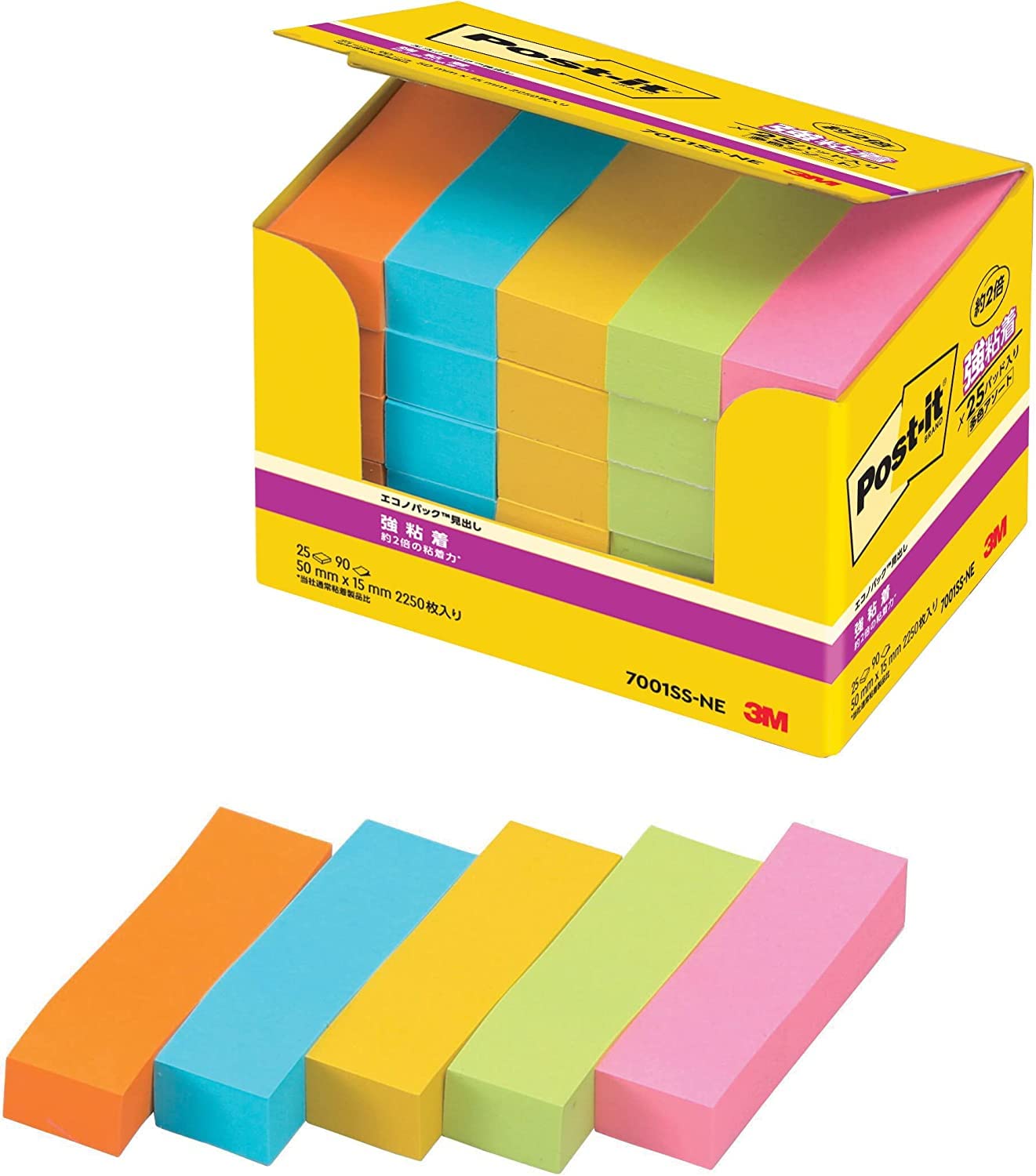 Сильноклеящиеся прямоугольные липкие листочки для заметок с заголовком неонового цвета 50 x 15 мм 90 листов x 25 блоков Post-It 7001SS-NE