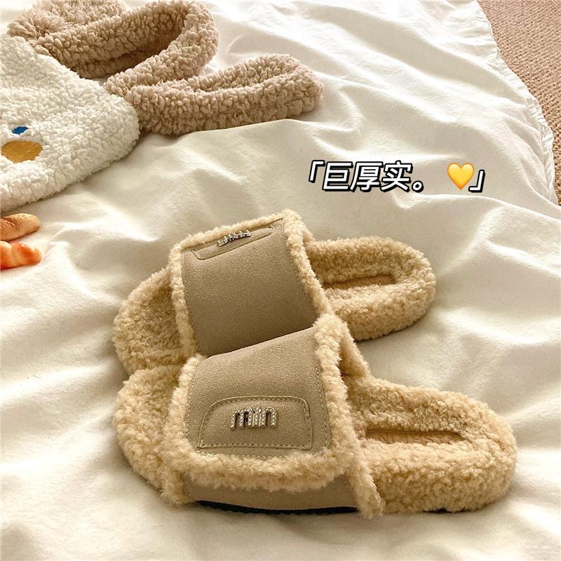 Сильный толчок к самосохранению~! Премиальные толстые тапочки из овечьей шерсти для верхней одежды, женские, зимние, теплые, нескользящие, пушистые шлепанцы 41