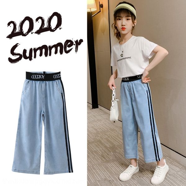 girls 2020 summer high-rise straight- jeans wide leg wide leg pants loose jeans in the big foreign flavor ankle-length pants, Blue