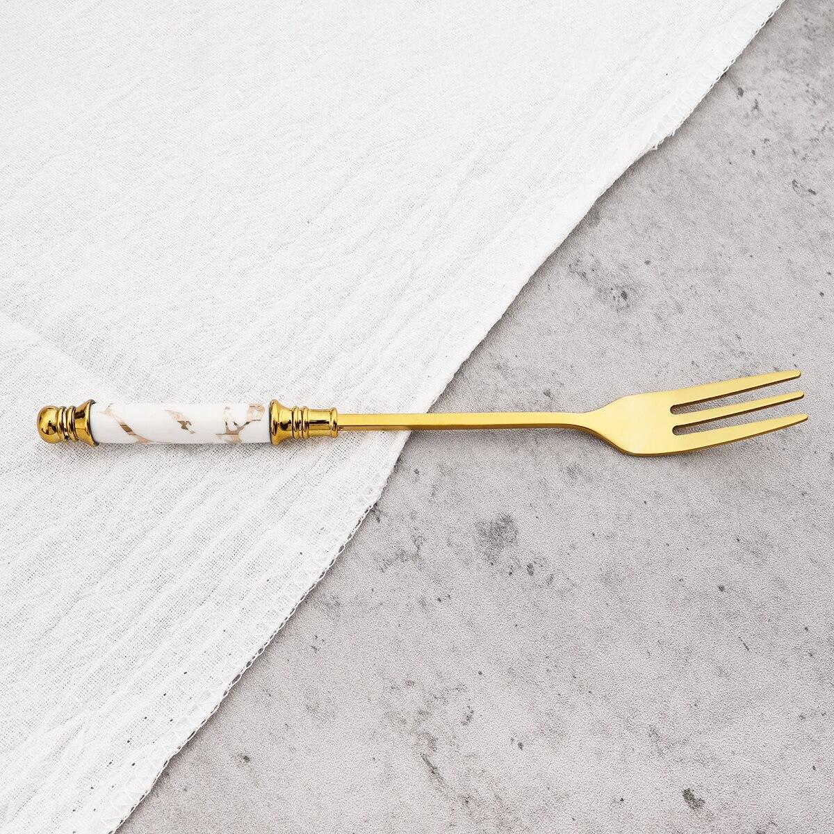 Симпатичная вилка для торта, белые керамические вилки, чайная вилка из нержавеющей стали, имитирующая мраморную ручку, керамическая кухонная вилка для десерта 6Pcs