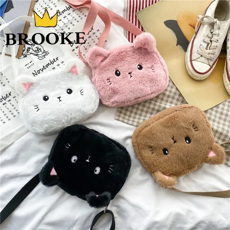 Симпатичная мягкая плюшевая Детская сумка через плечо с мультяшным котом, маленькие сумки-мессенджеры для маленьких девочек, зимняя модная...
