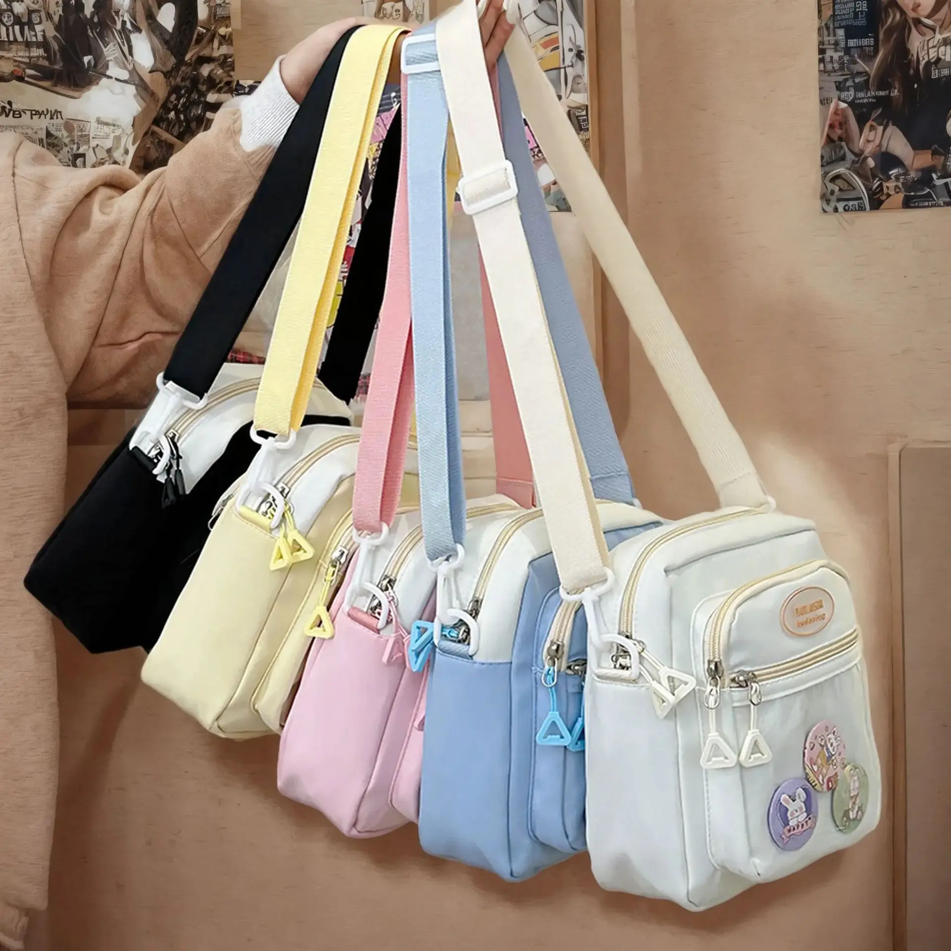 Симпатичная одинарная сумка через плечо для девочек начальной школы, детская наклонная сумка через плечо из нейлонового материала, застежка-молния