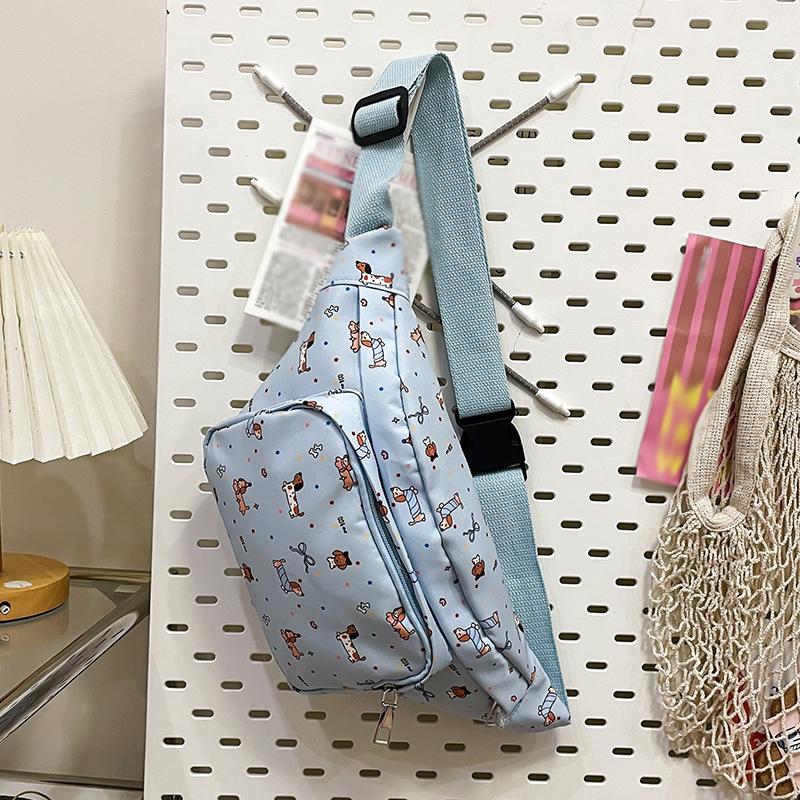 Симпатичная студенческая женская нагрудная сумка в японском стиле с рисунком таксы из мультфильма, сумка через плечо для отдыха, модная дорожная универсальная нагрудная сумка синий