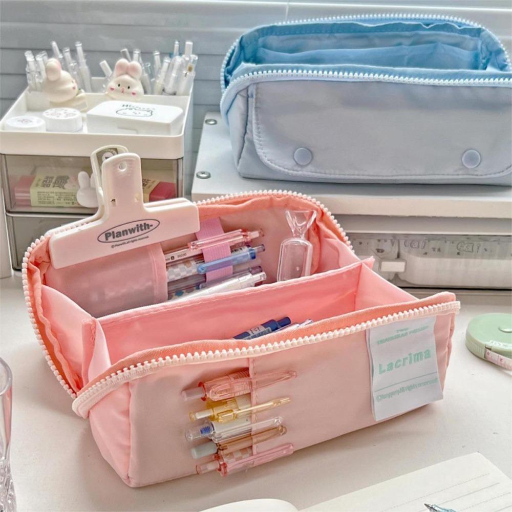 Симпатичная сумка-карандаш большой емкости на молнии, многослойные канцелярские принадлежности для студентов высокого внешнего вида