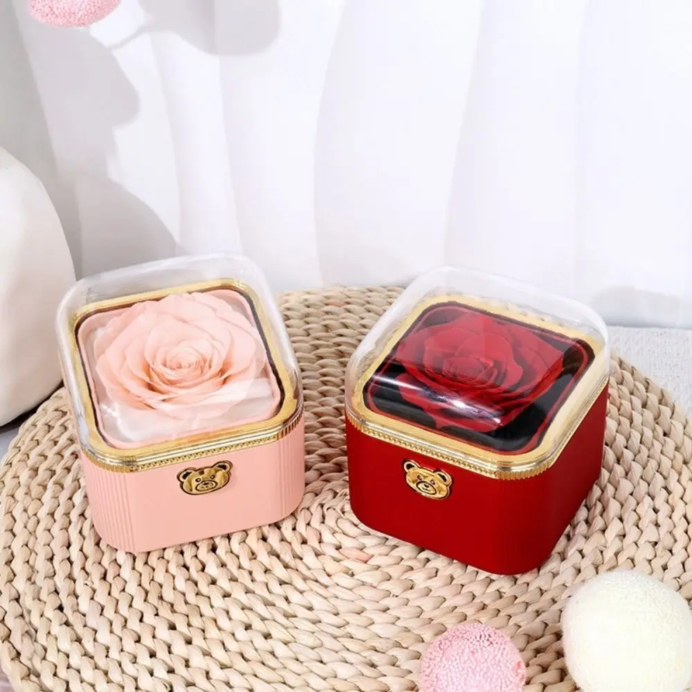Симпатичная флип-коробка для ожерелья, пылезащитная автоматическая вращающаяся коробка для роз, романтическая пластиковая коробка для хранения ювелирных изделий-сюрприз на День святого Валентина