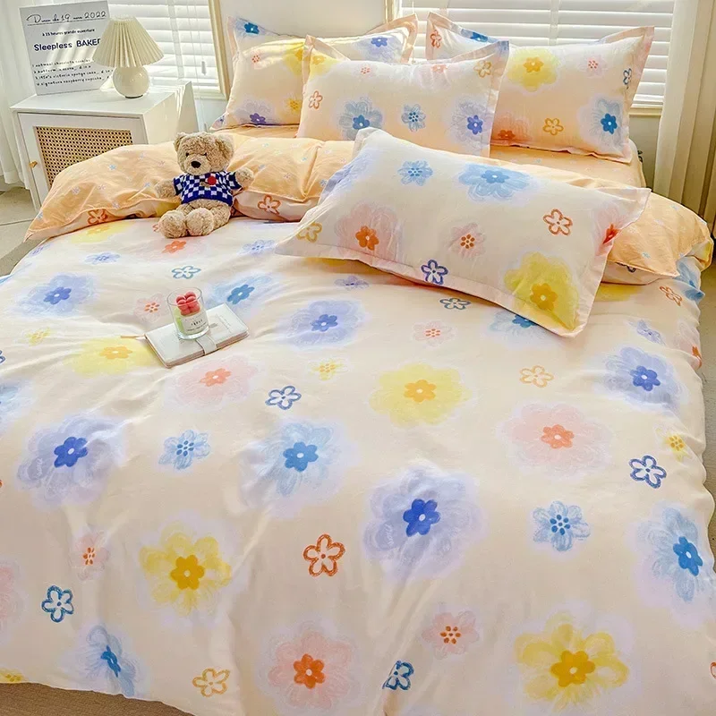Симпатичное домашнее одеяло, комплекты постельного белья, одеяло из промытого хлопка, пододеяльник, двойная односпальная кровать размера Queen/King для девушек и пар