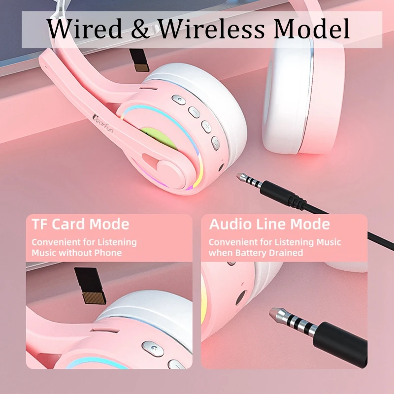 Симпатичные беспроводные наушники с кошачьими ушками и микрофоном для детей Девочки Детский подарок Стерео Музыкальный шлем для iphone Android Н...