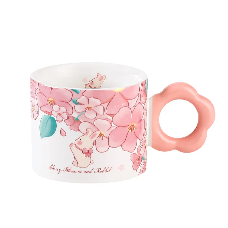 Симпатичные керамические чашки с кроликом и цветком, чашка в стиле Ins для девочек, сердца, для дома, мужская и женская, Мужская Ручная Подарочная сетчатая красная кружка для кофе, кофе