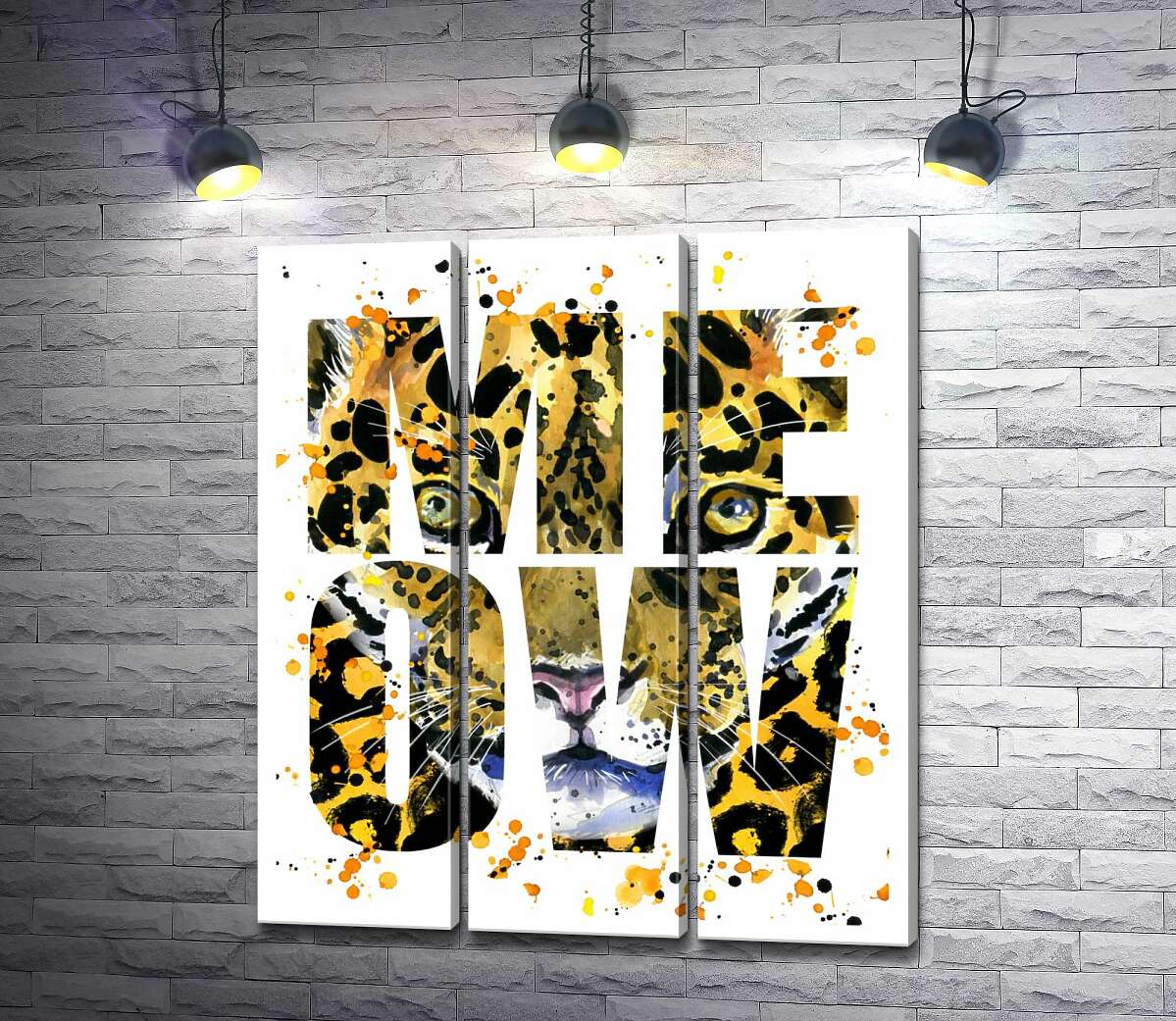 Модульная картина ArtPoster Пятнистый силуэт леопарда в буквах "meow" 102x118 см Модуль №11