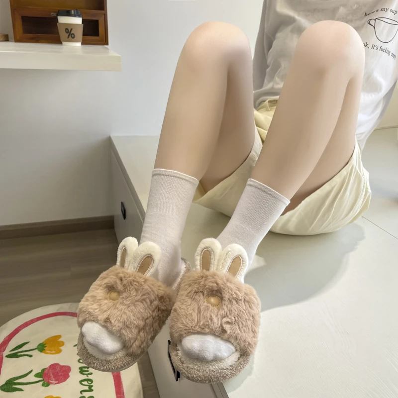 Симпатичные тапочки в виде животных, модные пушистые зимние теплые тапочки для девочек, женские домашние тапочки с мультяшным Кроликом, заб...
