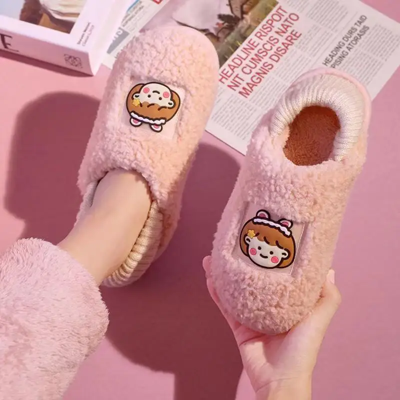 Симпатичные хлопковые тапочки на осень и зиму, женская домашняя обувь, обувь на толстой подошве, плюшевые теплые хлопковые тапочки для лени...