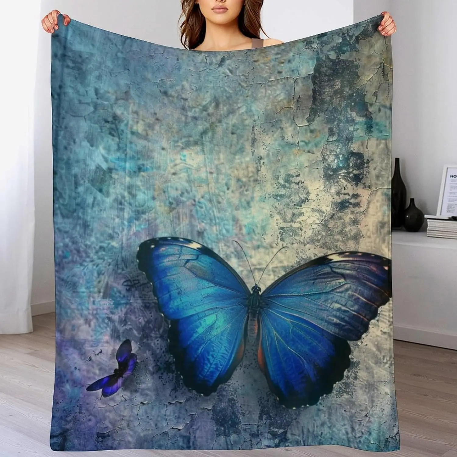 Синее фланелевое одеяло с крыльями бабочки и бабочки, шерстяное мягкое одеяло, легкое плюшевое одеяло, подходящее для дивана, кровати, удобное