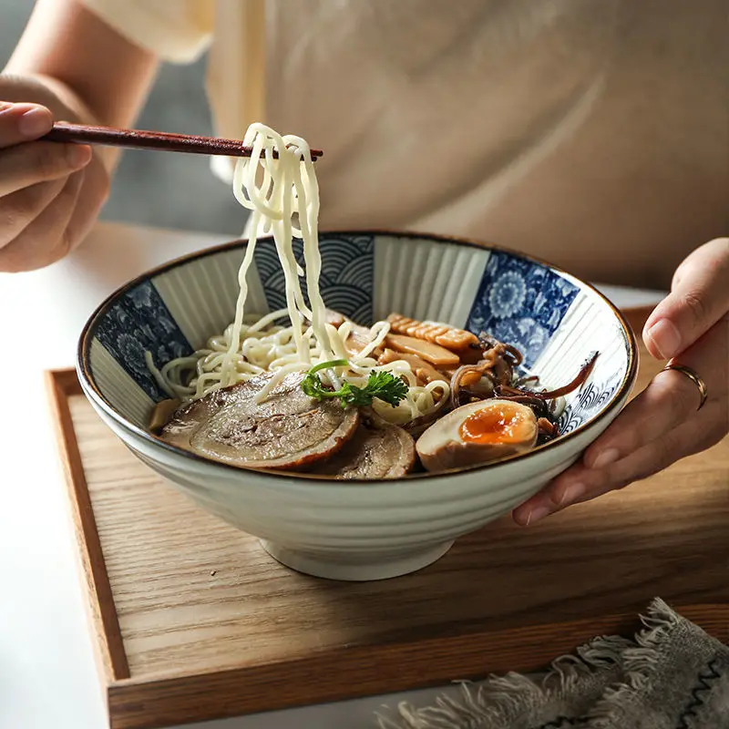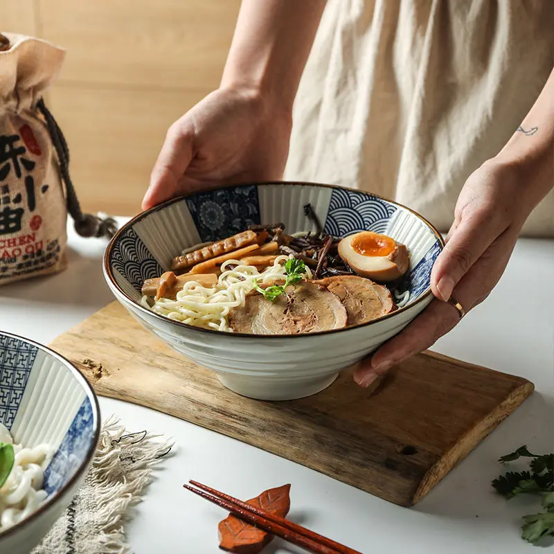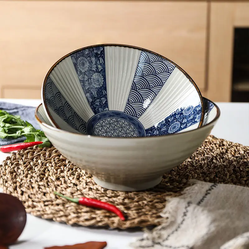 Сине-белая керамическая миска в японском стиле для шляпы, лапши, специальная посуда, бытовые кухонные принадлежности, товары для дома