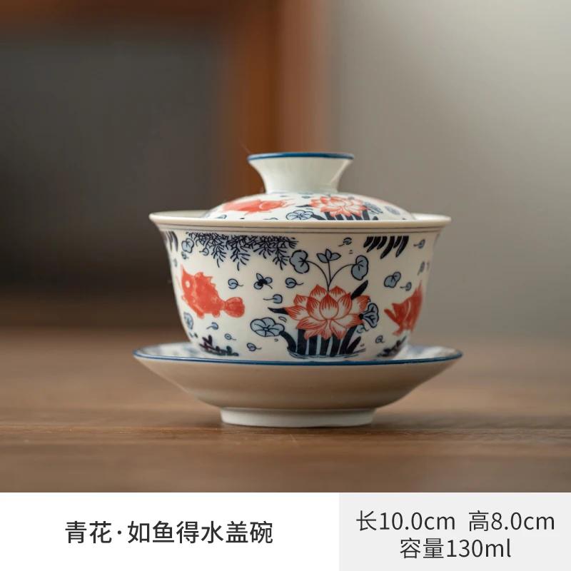 Сине-белая фарфоровая чашка саньцай с крышкой, одинарная чайная чашка с крышкой, не обжигающий чайный набор для кунг-фу, бытовой керамический чайник