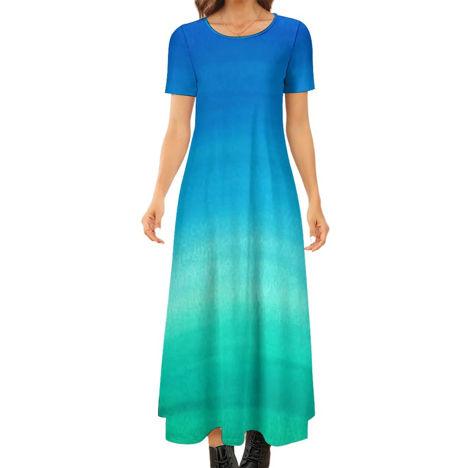 Сине-зеленое платье-макси с эффектом омбре, акварельное платье для вечевечерние в океане, базовые длинные платья в богемном стиле, женская о...