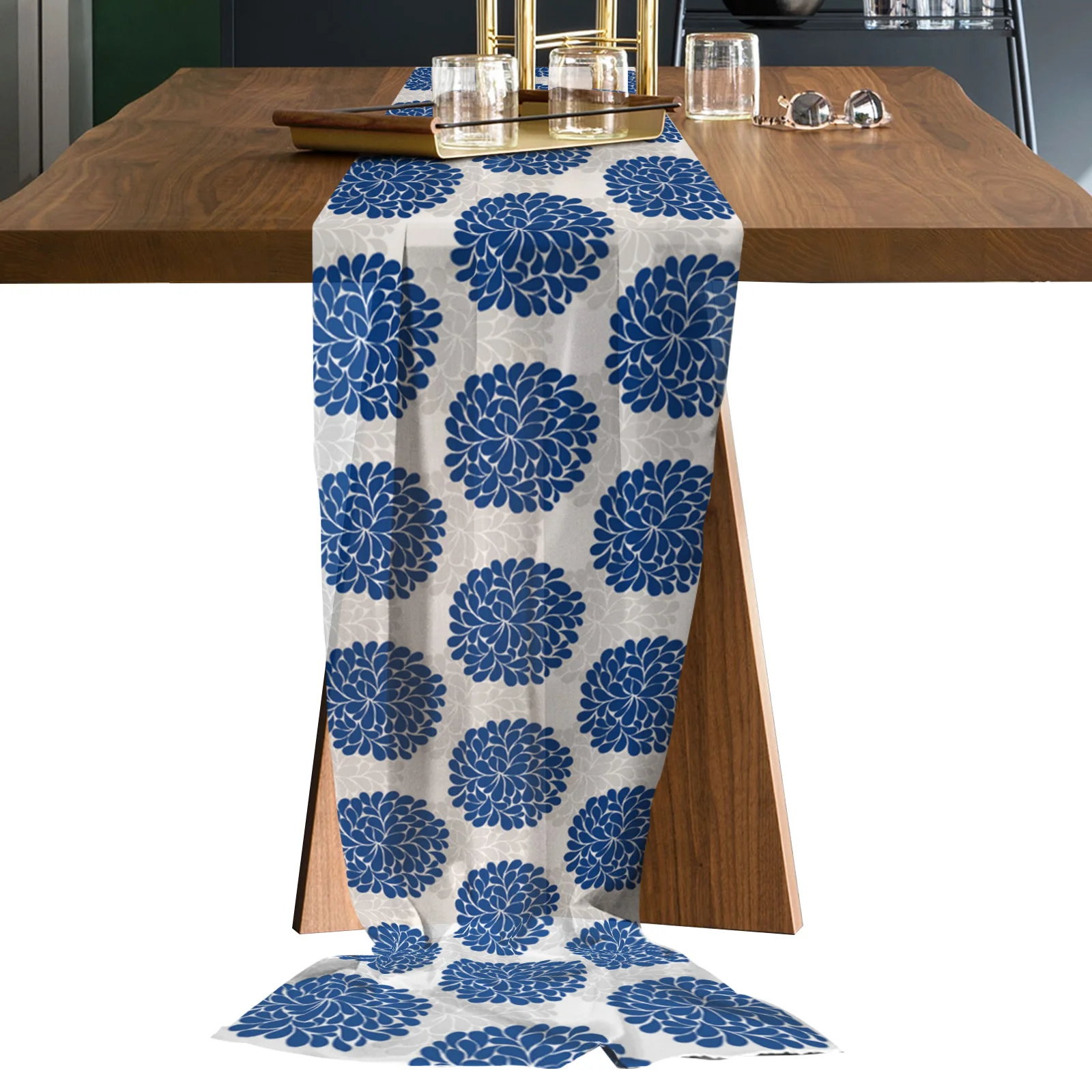 Сине-серая Цветочная Гортензия длинная шифоновая скатерть для свадебного отеля прозрачная скатерть искусственная вуаль скатерть для стол...