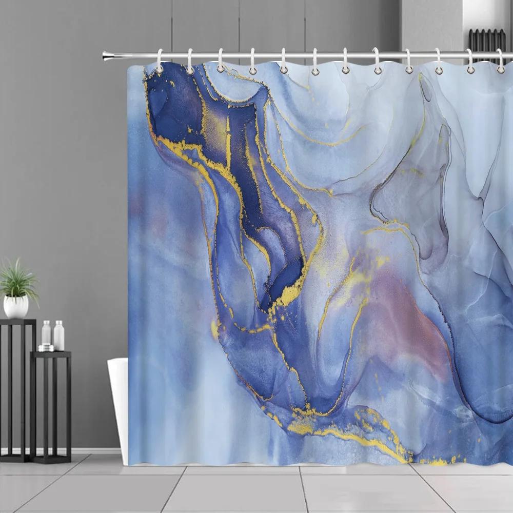 Синие Золотые Мраморные Шторы для Душа Золотистые Трещины Абстрактные Современные Домашние Моющиеся Полиэстеровые Тканевые Шторы для Ванной Декор для Ванной 35x70in-90x180cm