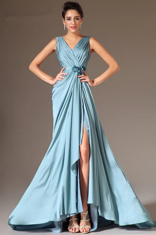 Синие вечерние платья-русалки с V-образным вырезом, шифоновое сексуальное женское длинное вечернее платье с разрезом и открытой спиной, пла...