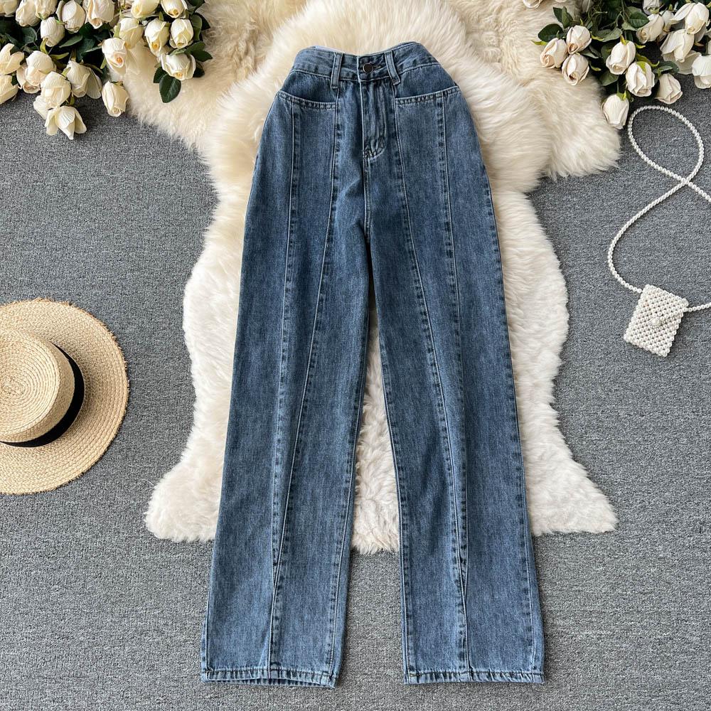 Синие джинсы, женские ранние весенние свободные маленькие брюки в стиле ретро, универсальные модные брюки с высокой талией и широкими штанинами