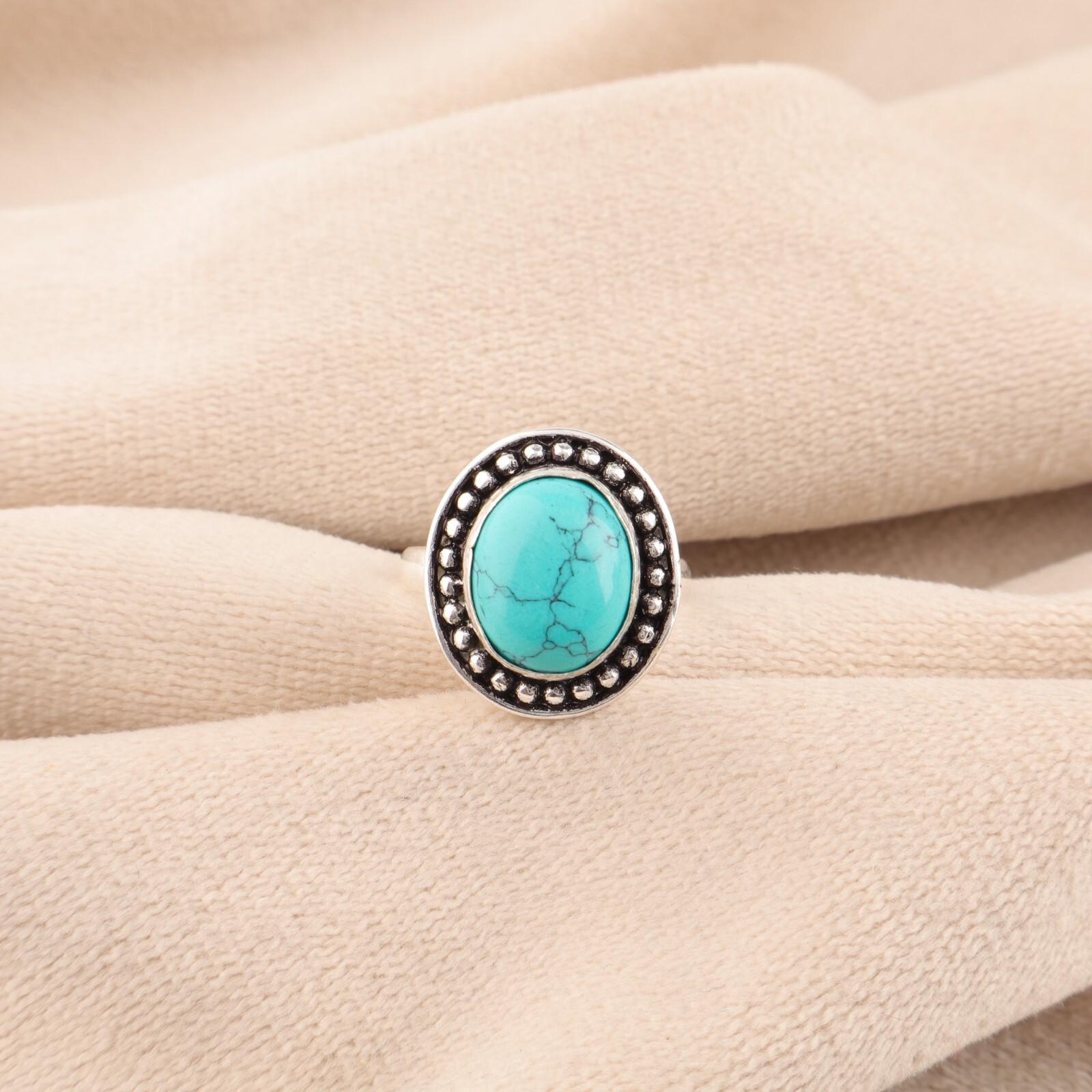 Синий Бирюзовый Драгоценный Камень 925 Стерлинговое Серебро Ручной Работы Модное Кольцо Для Женщин RR-62-38 8.75