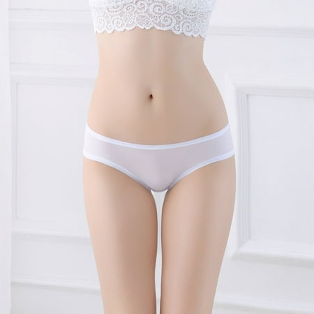 Panties For Women Women s Mid Low Waist Ice Traceless Large Sexy Lace Transparent Underwear (Black S)