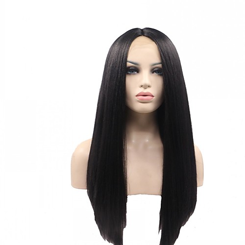 Синтетические кружевные передние парики Прямой Стиль Лента спереди Парик Черный Черный Искусственные волосы Жен. Жаропрочная / Природные волосы Черный Парик Средние / Длинные