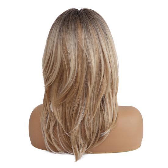 Синтетические парики Длинные прямые многослойные прически Омбре Черный Коричневый Блондин Серый Пепельный Полный парик с челкой для женщин