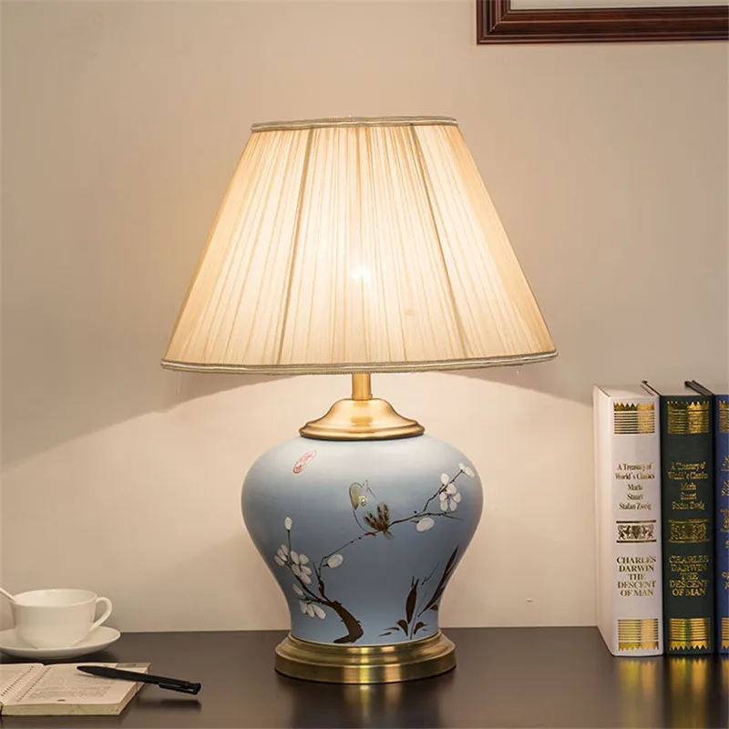 Синяя Ручная Роспись Цзиндэчжэнь Керамическая Настольная лампа для кровати прикроватная гостиная прихожая кабинет стол ночник для чтения TD029