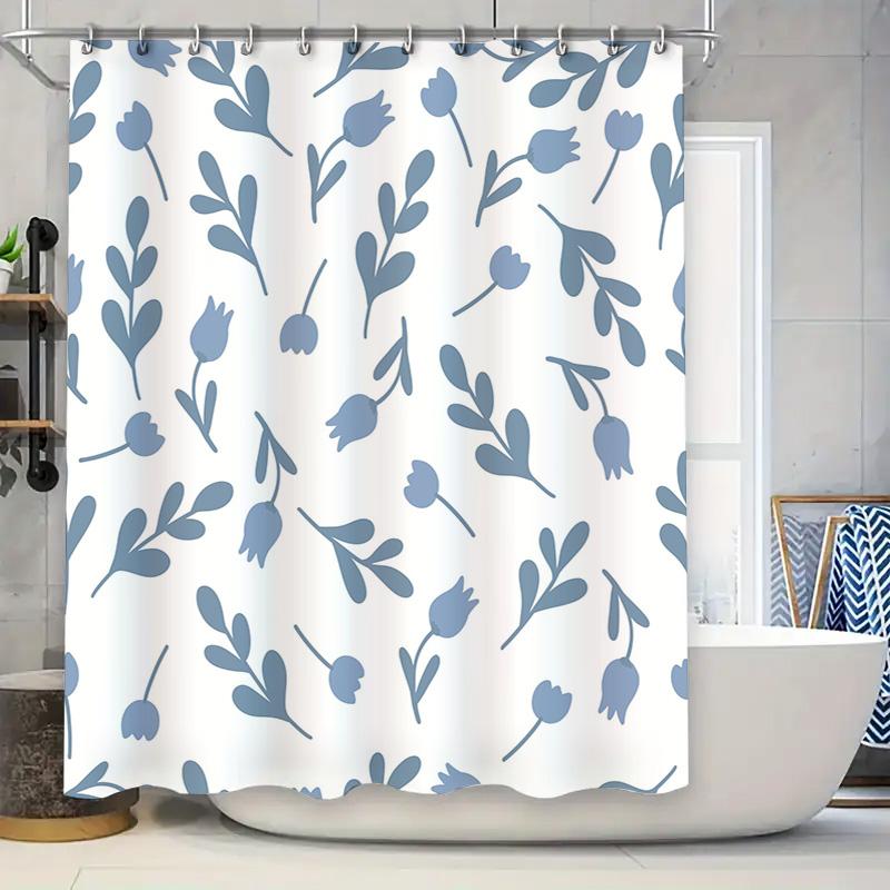 Синяя Цветочная Шторка для Душа Белая Ткань Принт Банное Полотенце, Домашний Декор Водонепроницаемые Шторки для Душа с Кольцами Набор для Ванной D 90x180cm