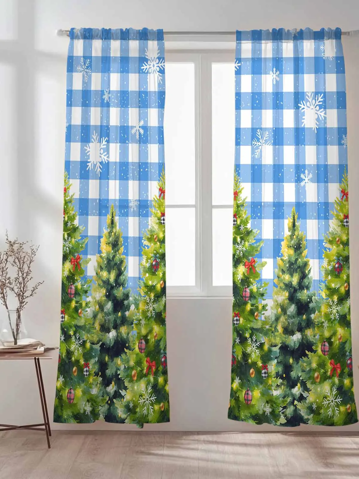 Синяя клетчатая рождественская елка, тюлевые прозрачные шторы для гостиной, спальни, кухни, украшения, вуаль, шторы из органзы