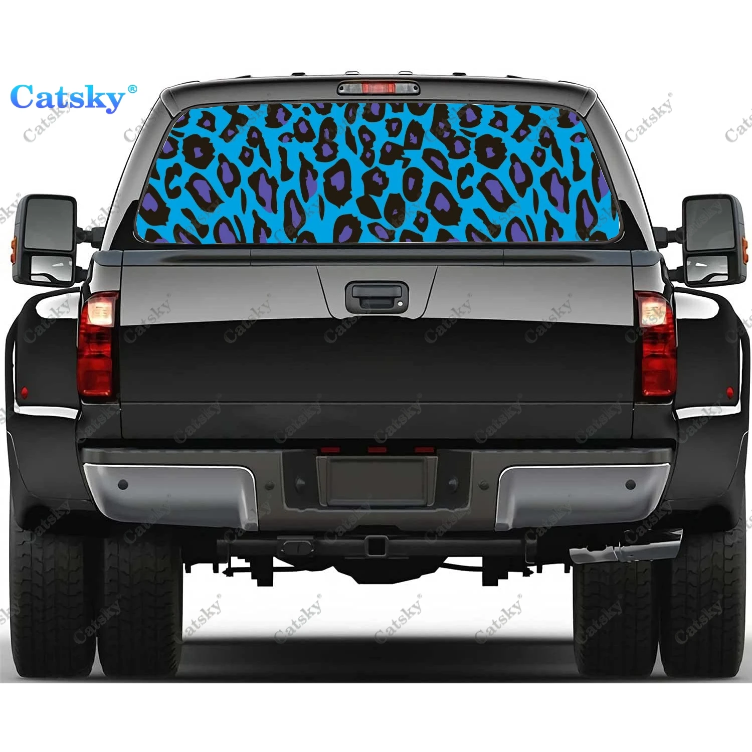 Синяя леопардовая печать, автомобильная наклейка на заднее стекло, прозрачная перфорированная наклейка на окно грузовика, Виниловая наклейка для заднего стекла, украшение